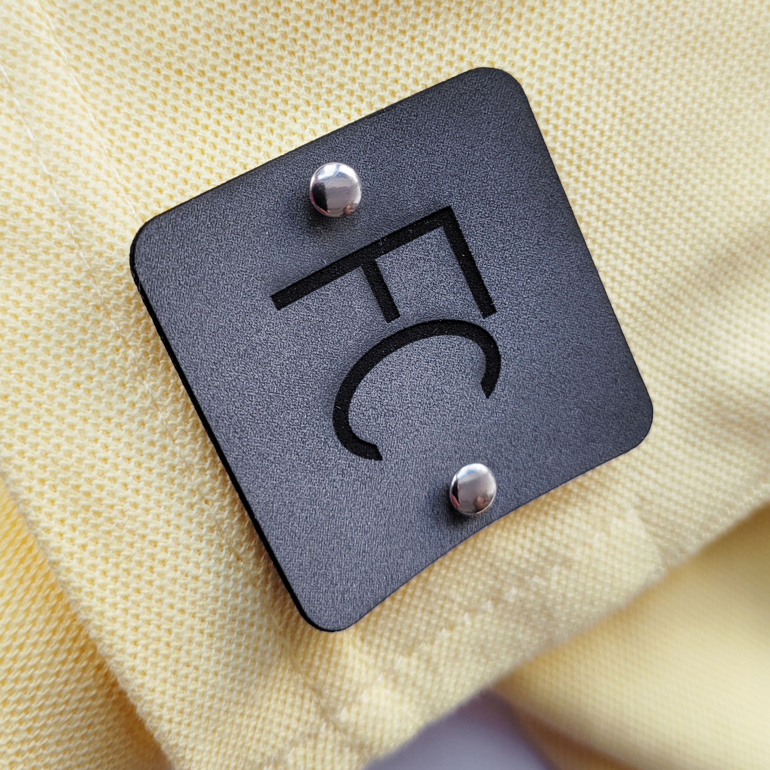 Етикетки з екошкіри на заклепках з ВАШИМ логотипом/текстом, комплект. 200 шт.
