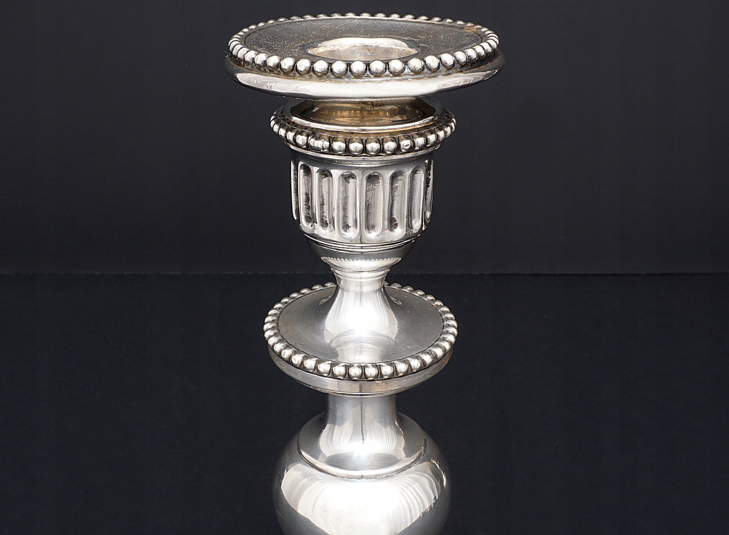 Вес серебра 618 грамм. Общая высота 27,2 см, диаметр основания 12,7 см.