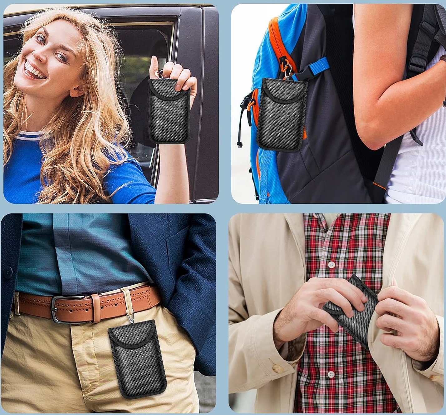 Защитите свой автомобиль и свое имущество с помощью инновационного футляра Faraday, который эффективно блокирует сигналы, излучаемые ключами без ключа. Оснащенный двойными слоями защитного материала и высококачественной текстурой из углеродного волокна, чехол обеспечивает надежную защиту от угона автомобиля методом чемодана. Это идеальное решение для людей, которые ценят безопасность и комфорт. Защитите свои ключи, платежные карты и другие предметы в элегантном, практичном и удобном для переноски футляре.