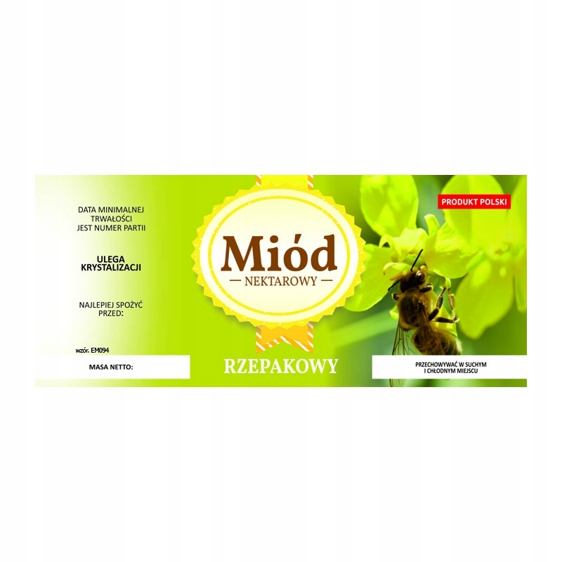 Просматривая «Etykieta na miód Rzepakowy EM094D - duże» данный товар из каталога «Этикетки и бандероли для меда» вы можете быть уверены, что после оформления заказа, доставки в Украину, вы получите именно то, что заказывали, в оговоренные сроки и европейского качества.