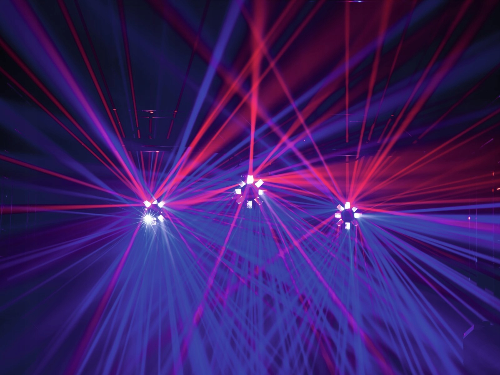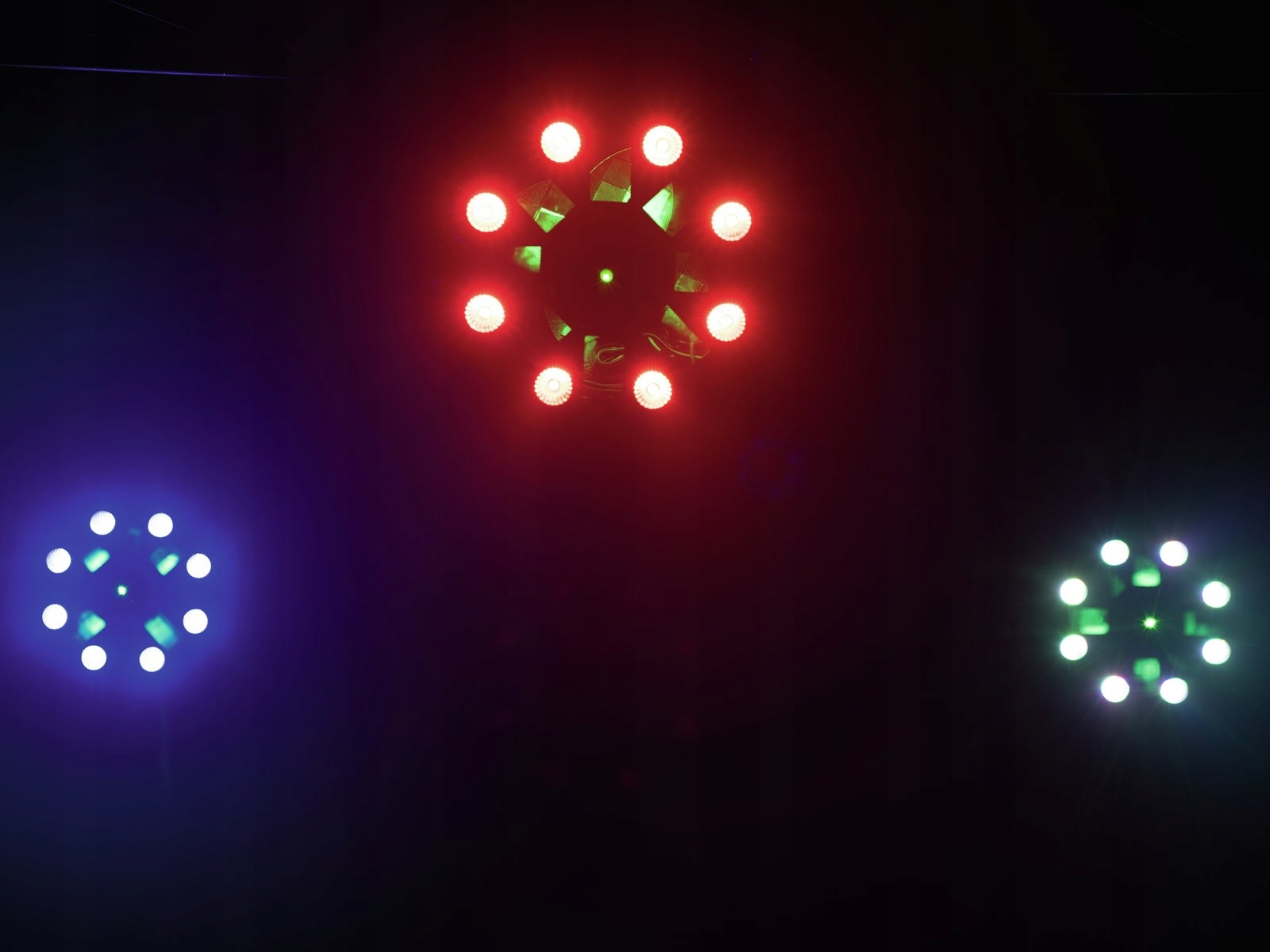 - 8 светодиодами RGB+UV мощностью 4 Вт (4 в 1) для создания эффектов заливающего и черного света