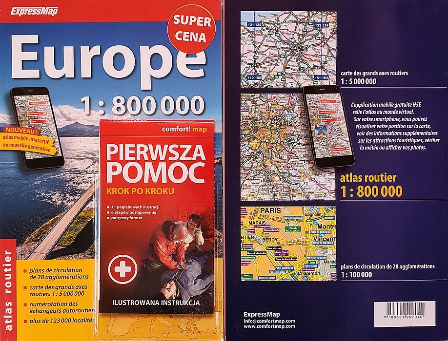 Европейский автомобильный атлас масштабом 1:800 000 + французское издание «Первая помощь»