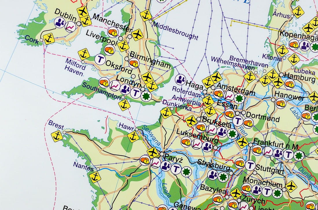 EUROPA GOSPODARKA PRZEMYSŁ ROLNICTWO MAPA ŚCIENNA