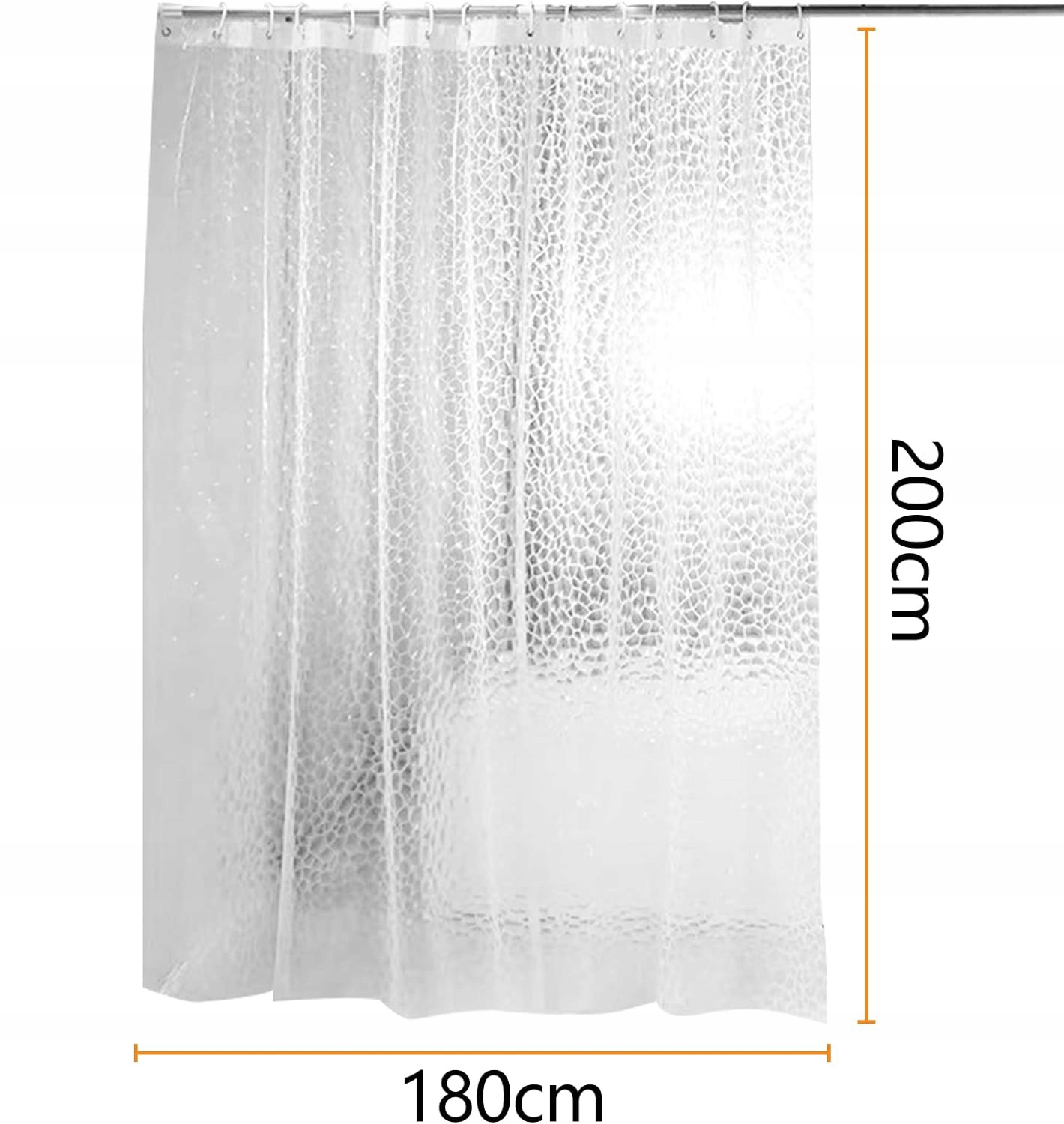Эта занавеска для душа оснащена 12 швами из нержавеющей металлы и правильно оборудована 12 кольцами для занавески для душа, металлическими глазами, многослойным хромом, защита от ржавчины, длится, значительно улучшает срок службы душевого кора.