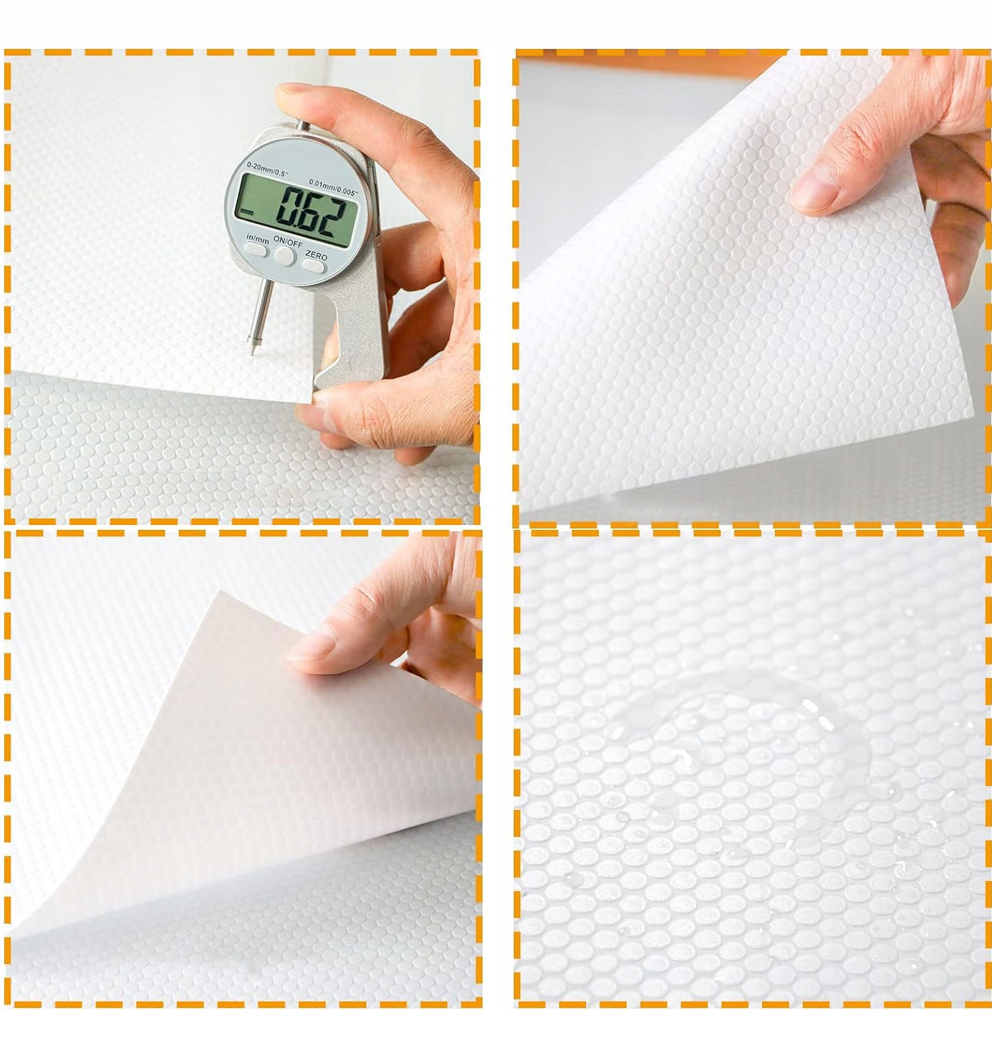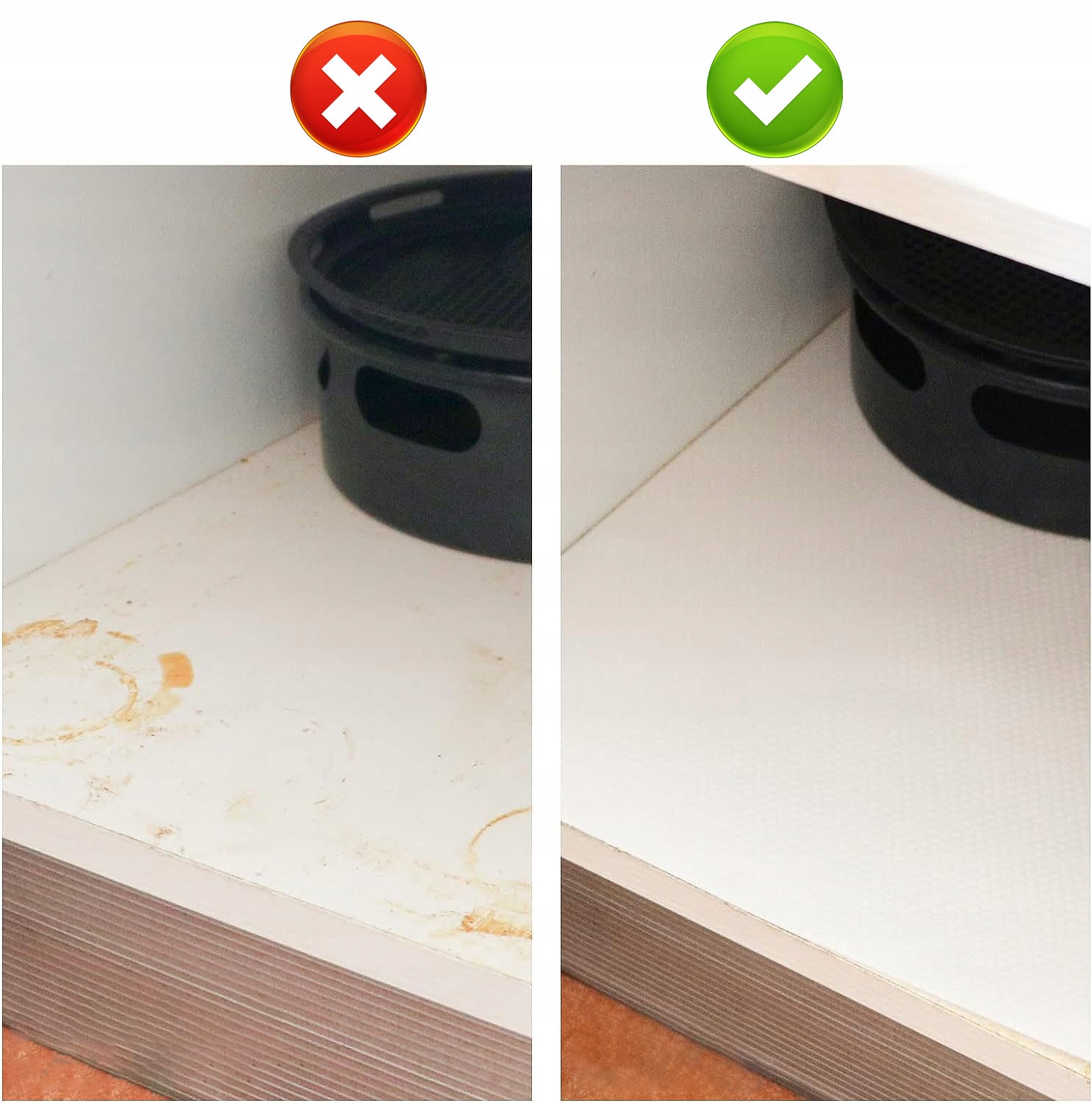 ✅ не -адгезивный: b> вставка шкафа была спроектирована с текстурой точек с одной стороны для определенной стороны сопротивления скольжения, а другая имеет плавную поверхность для легкого укладки. Обе стороны сделаны из неадгезивного материала, поэтому вы можете легко вымыть все пятна, и эта вставка не оставляет никаких признаков.