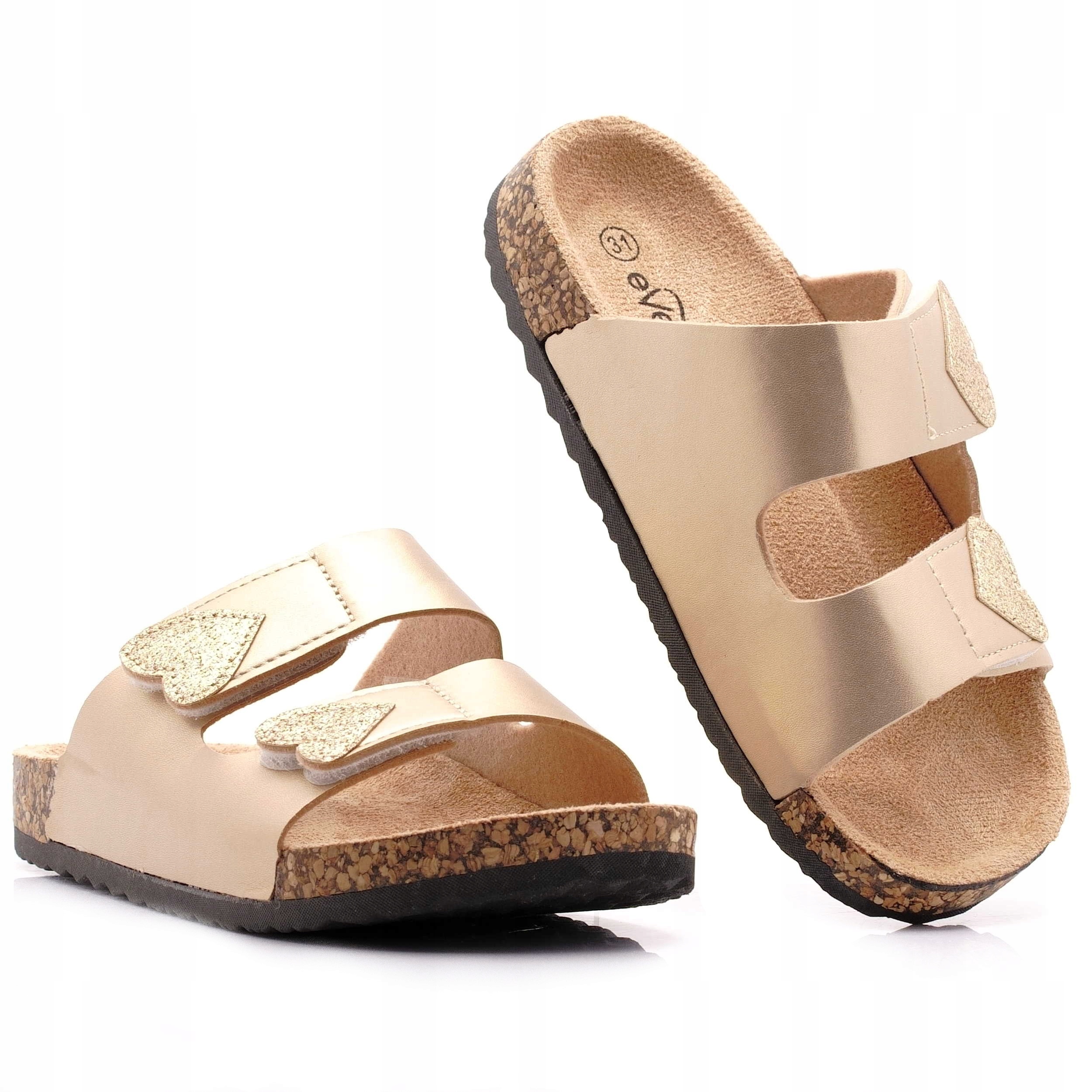 EVENTO 5977 ДІВЧАЧІ ТАПОЧКИ З ПРОБКОЮ, ЛІТНІ, на липучці, GOLD HEARTS, 34 р.