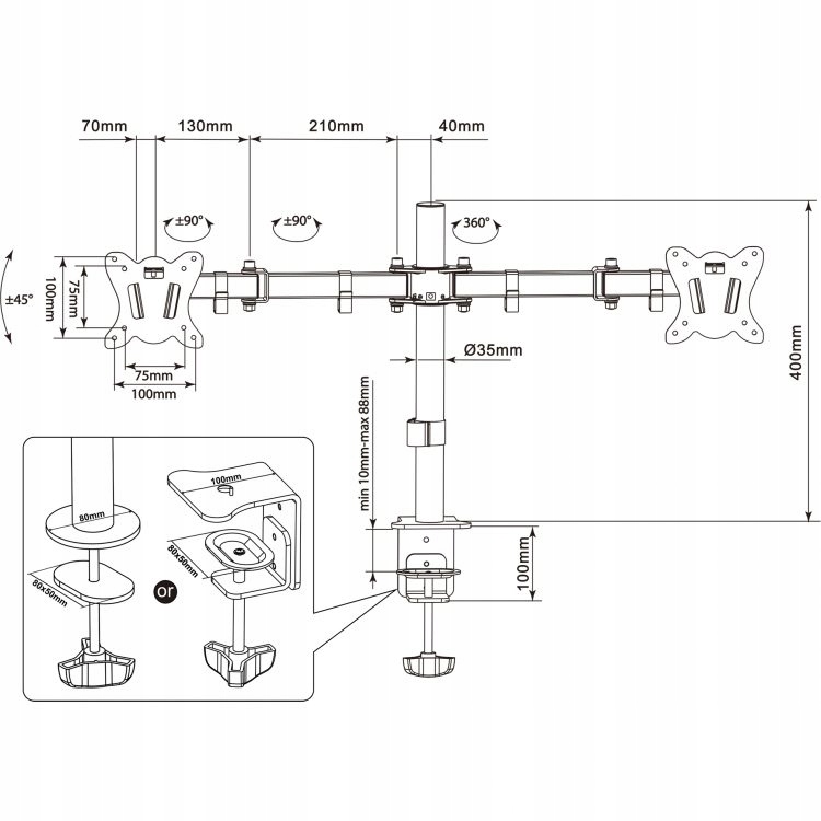 Montis MT015 «EVEREST» — настольное крепление для двух мониторов с диагональю от 13 до 27 дюймов, обеспечивающее максимальную гибкость просмотра и игровой комфорт.