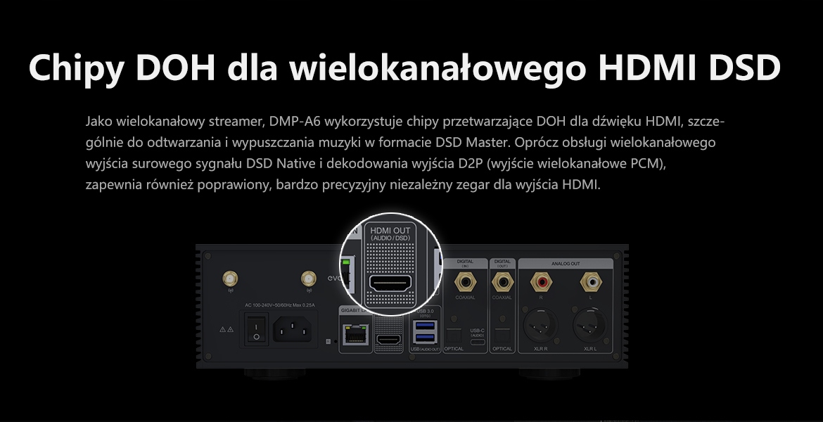 - Полностью настраиваемые двойные схемы DOH поддерживают встроенный HDMI DSD и многоканальный выход D2P.