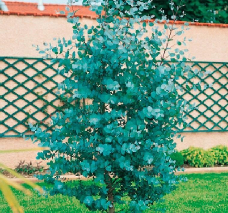 Эвкалипт – единственный вид эвкалипта, который можно сажать перед домами в Польше. Сохраняет свой синий цвет круглый год, даже зимой!!! Более того, он отпугивает мух и комаров, а его цветы облегчают боль от порезов. Это дерево высотой до 1,5 м с ароматными светло-голубыми листьями, в молодом возрасте округлыми (старшие — ланцетными). Украшением растения также является отслаивающаяся кора, похожая на таковую у платана. белые и кремовые цветки, появляющиеся с весны до лета.