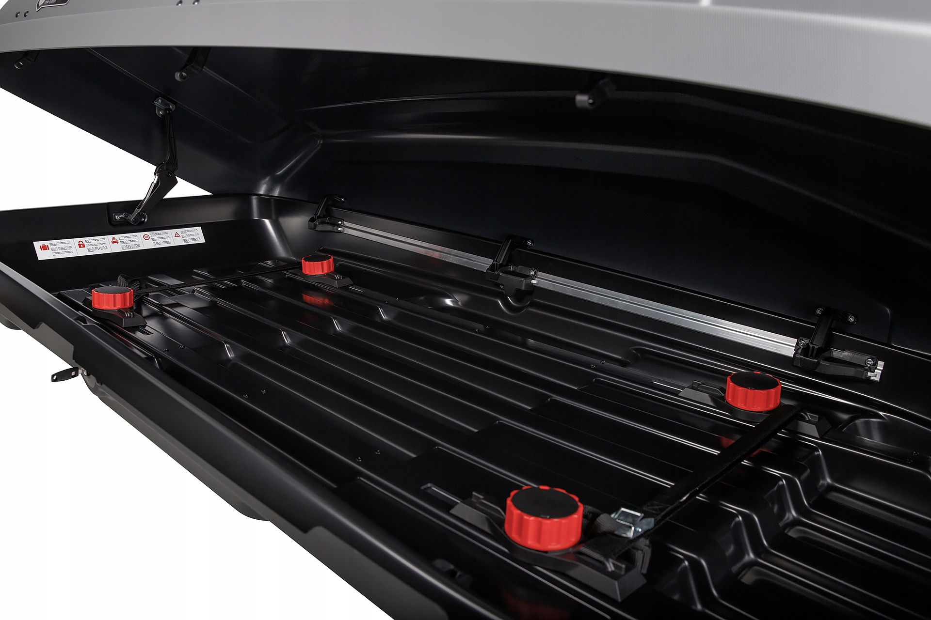 Короб крепится к балкам крыши с помощью продуманного челюстного механизма New Quick Attachment System менее чем за 5 минут. Это проверенный, надежный, очень быстрый и чрезвычайно удобный способ сборки, гарантирующий безопасность использования.