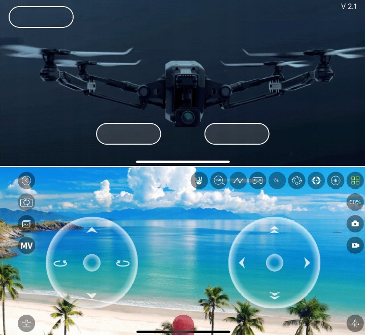Приложение позволяет снимать фото и видео, а также управлять дроном с помощью виртуальной консоли >. В приложении также доступен ряд других функций.