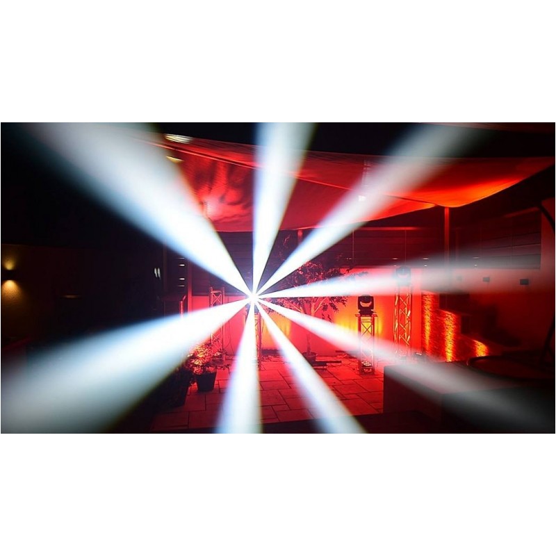 Устройство оснащено статическим колесом гобо с эффектом Gobo Shake, содержащим 17 современных узоров, а также цветовым колесом с 14 светоокрашивающими фильтрами. Луч разделяется восьмилучевой призмой. Среди систем, установленных в головке, стоит отметить моторизованную фокусировку, быстрый затвор, функцию автоперепозиционирования, а также режим стробоскопа с регулируемой частотой вспышки.