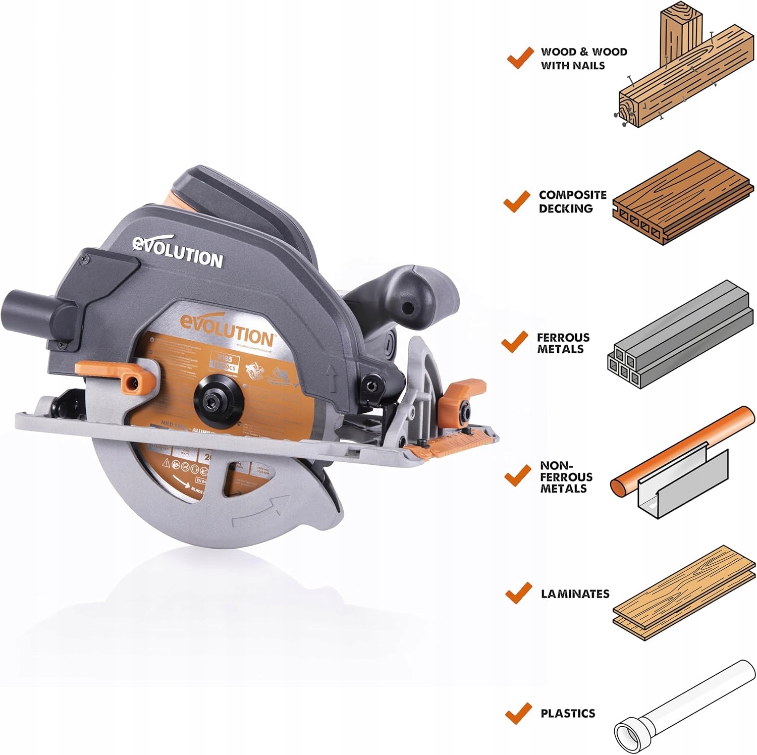 Evolution Power Tools R185CCS Циркулярная пила с направляющей TCT и полотном