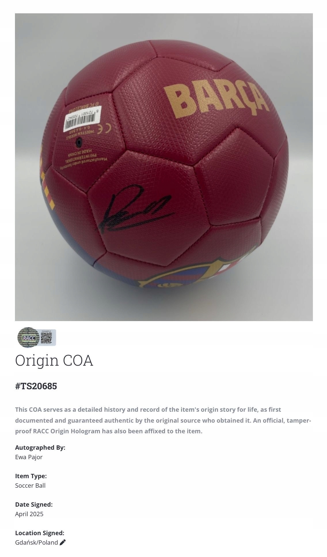 EWA PAJOR - ФК Барселона, мяч, оригинальный автограф + СЕРТИФИКАТ