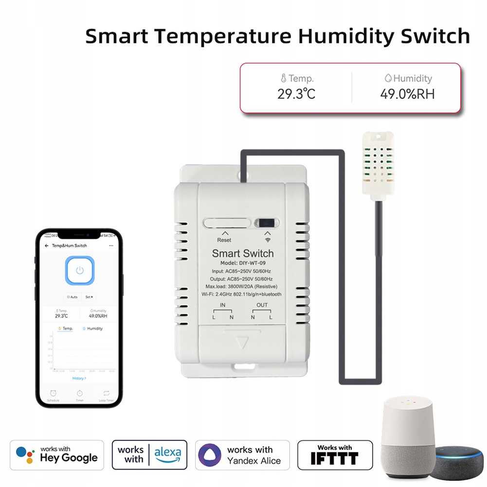 - Температурный переключатель влажности + 1 м. Датчик влажности: 115 г/4,06 Стерека