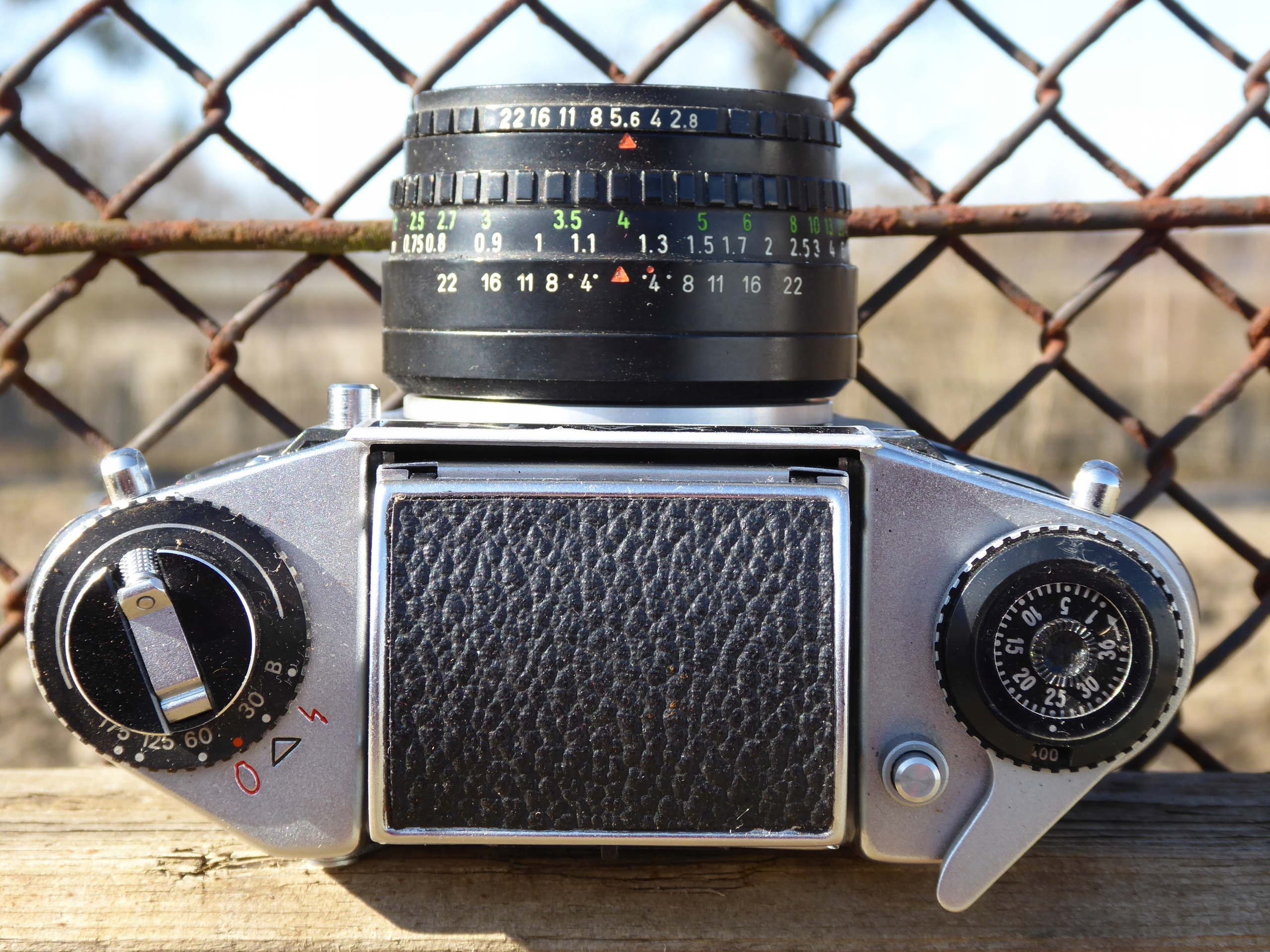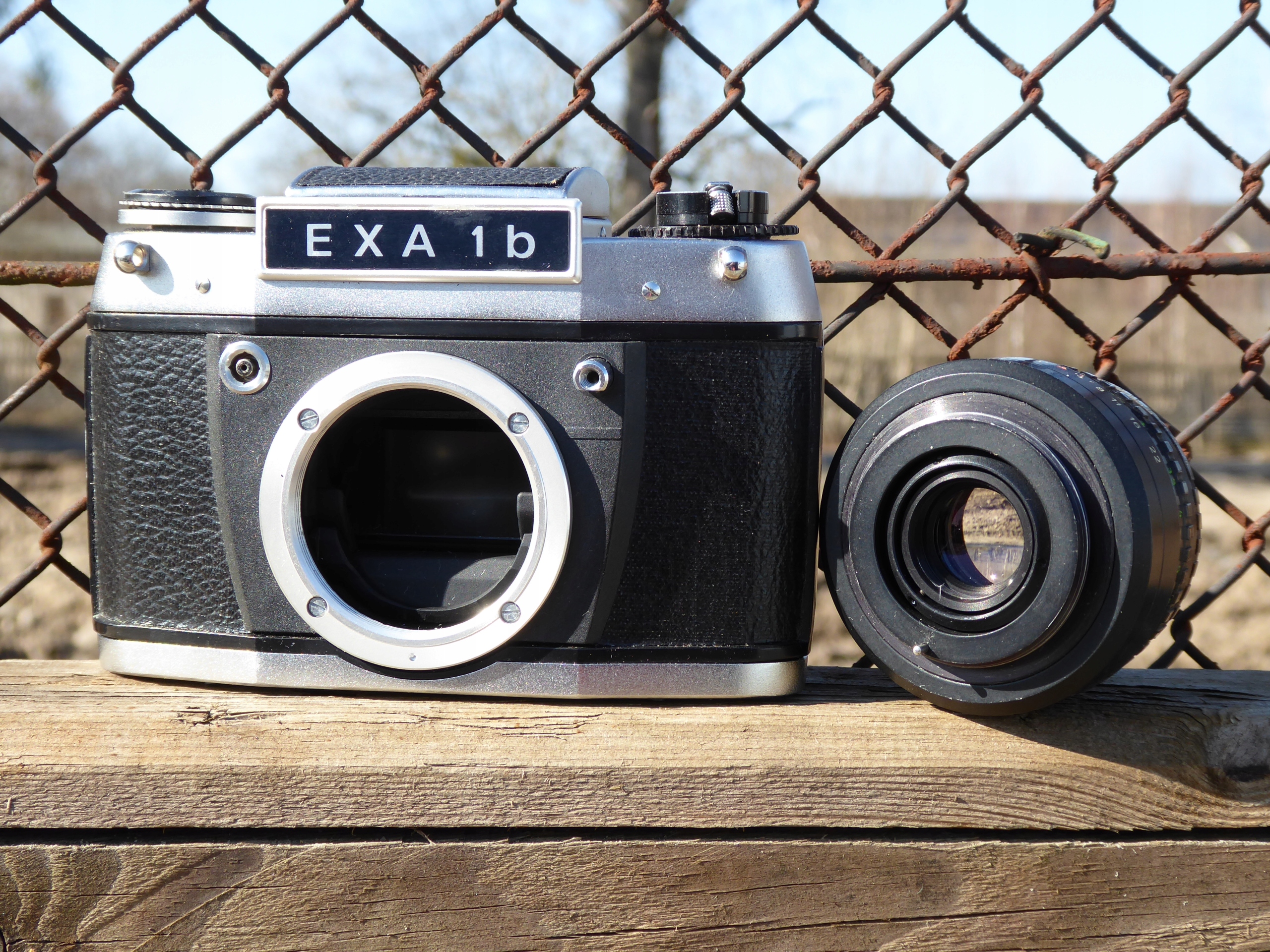 Простая строка Любители. Это позволило синхронизации с помощью вспышки в любое время. EXA 1B - это простой классический SLR для любителей аналоговой фотографии, а объектив Domiplan 50 мм f/2.8 делает фотографии уникальными, слегка винтажными. Фотографический, дефект