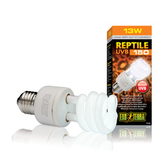 Exo Terra Reptile UVB150 имеет очень высокий уровень излучения UVB, аналогичный солнечному свету в пустынях. Эти места получают больше прямого солнечного света, поэтому рептилии пустыни более подвержены воздействию ультрафиолетового излучения, чем любой другой вид рептилий. Эту лампу также можно использовать в террариумах с более плотными экранами, чтобы обеспечить достаточное проникновение ультрафиолета. Плотные экраны могут отфильтровывать до 50% UVB-лучей. Высокая эффективность витамина D3 обеспечивает фотосинтез витамина D3, который поддерживает усвоение кальция и предотвращает метаболические заболевания.