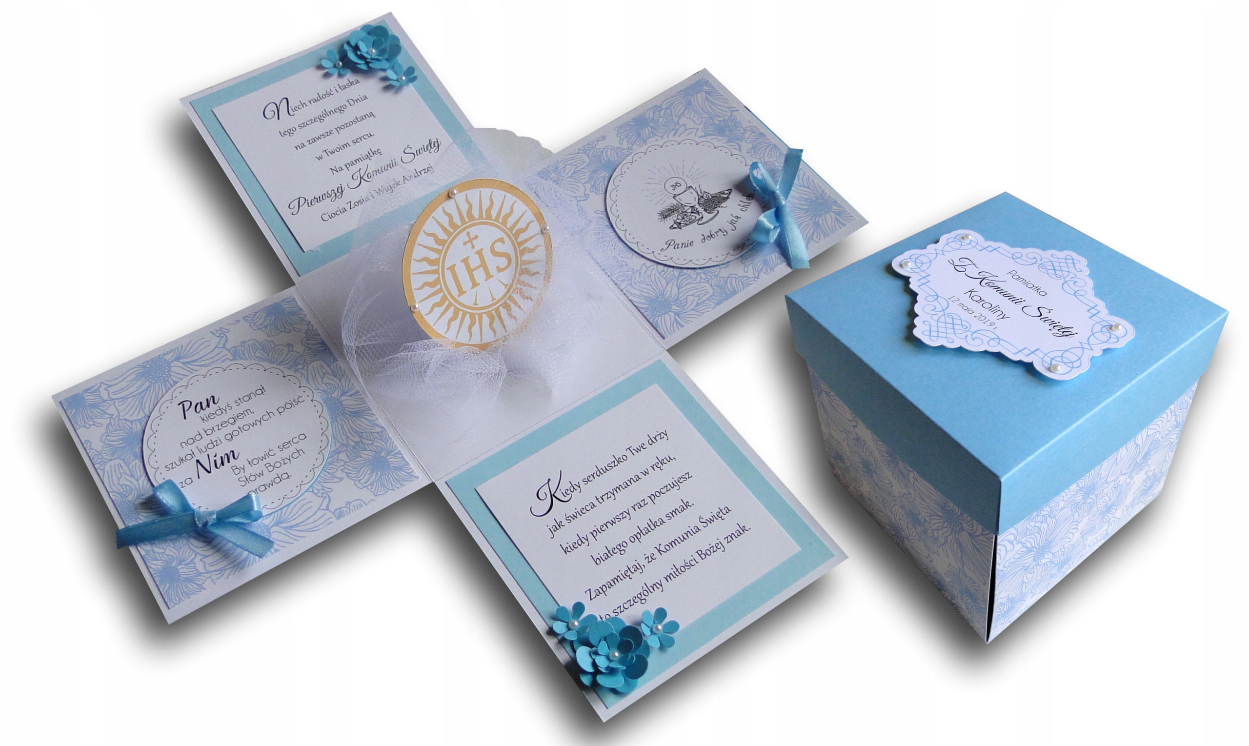 Просматривая «EXPLODING BOX подарунок для причастя», вы можете быть уверены, что данный товар из каталога «Поздравительные открытки» будет доставлен из Польши и проверен на целостность. В цене товара, указанной на сайте, учтена доставка из Польши. Внимание!!! Товары для Евросоюза, согласно законодательству стран Евросоюза, могут отличаться упаковкой или наполнением.