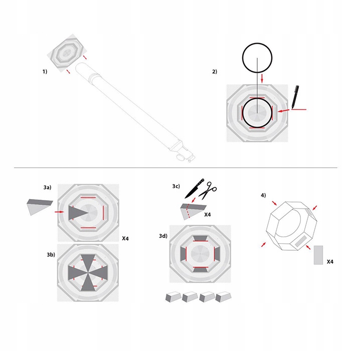 Фольга помещена в жесткую картонную оправу. В комплект входят элементы, позволяющие подстраиваться под конкретный телескоп диаметром от 200 до 280 мм и телескопы SC 9–10 дюймов.