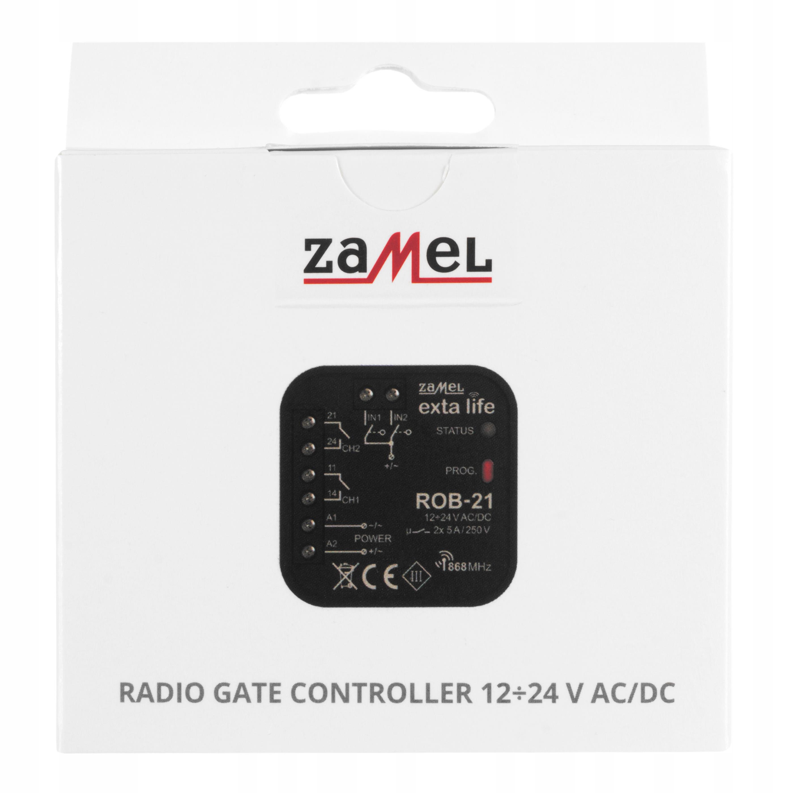 Приемник ROB-21 предназначен для открытия/ закрытия входных ворот или гаражные ворота от уровня пилотов и применения Exta Life. Приемник также может быть успешно использован для управления солепатинами во входных воротах до свойства. В случае контроля затвора необходимо подключить приемник к соответствующим входам выделенного драйвера или водителя гаража. Функционально режим управления затвором позволяет быть полностью открытым или только наклоняться до фиксированного уровня. Широкий диапазон напряжения мощности 12 ÷ 24 В переменного тока/постоянный ток обеспечивает сотрудничество с большинством ворот, доступных на рынке. Два канала без контактов разрешают независимое управление: ворота и ворота, два или два ворота. Размеры позволяют установить установку Ø60 CAN или непосредственно в корпусе контроллера GATE. Входные ворота или гаражные ворота,!