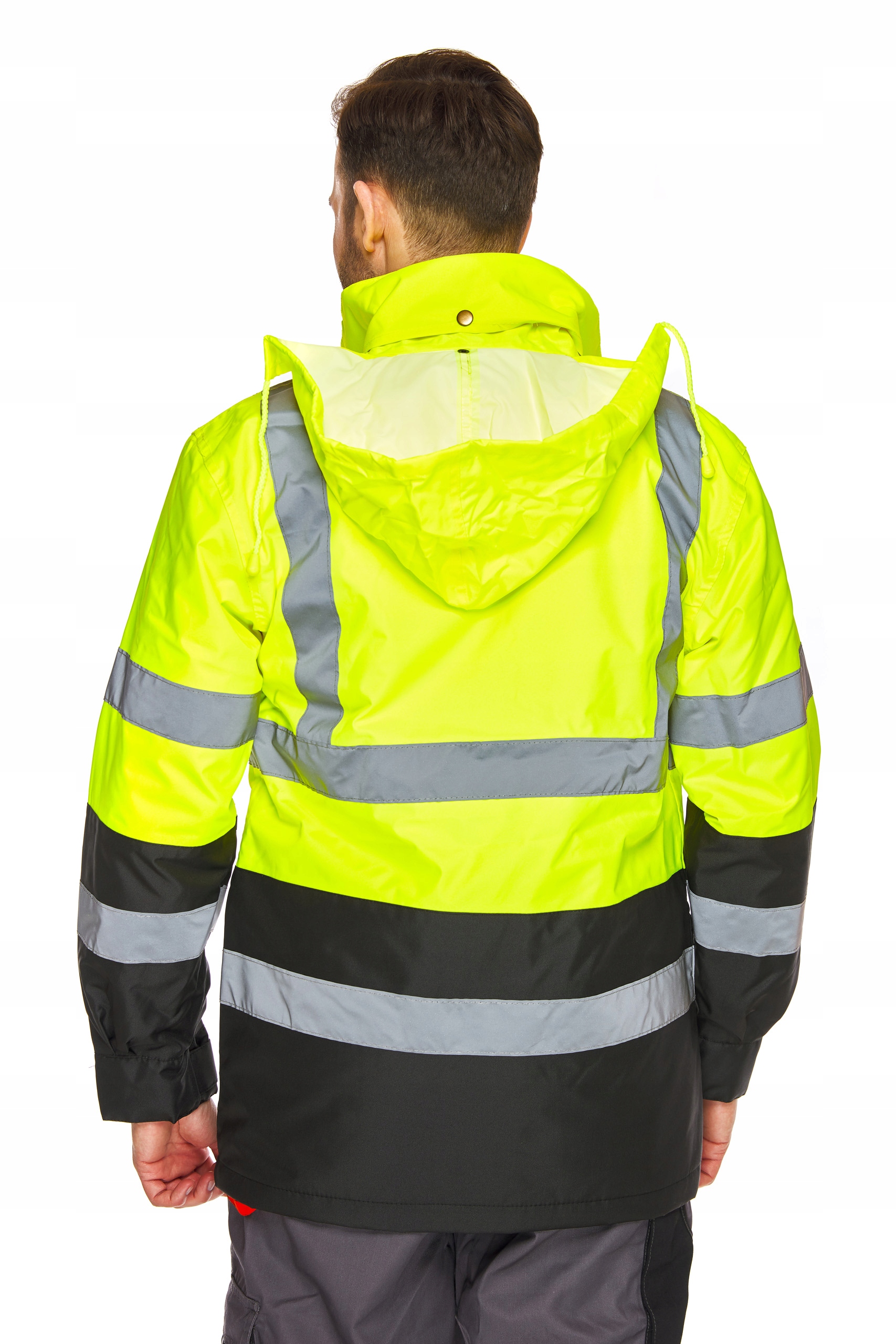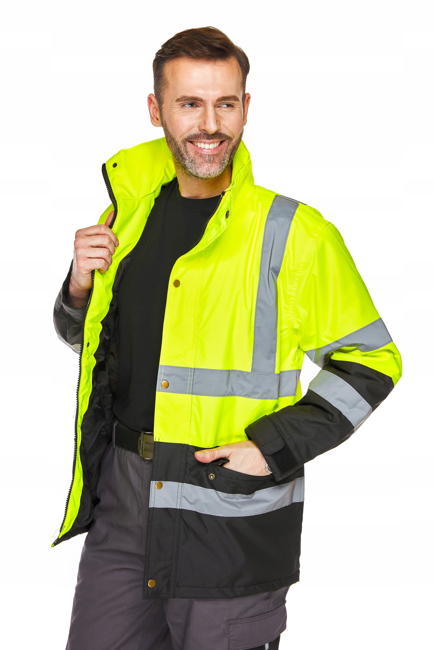 Утепленная защитная куртка из водонепроницаемого, флуоресцентного полиэстера 300D материала Oxford с повышенной видимостью, с пропиткой ПУ, полиэфирным утеплителем, отделанная полиэстеровой стежкой на внутренней подкладке.