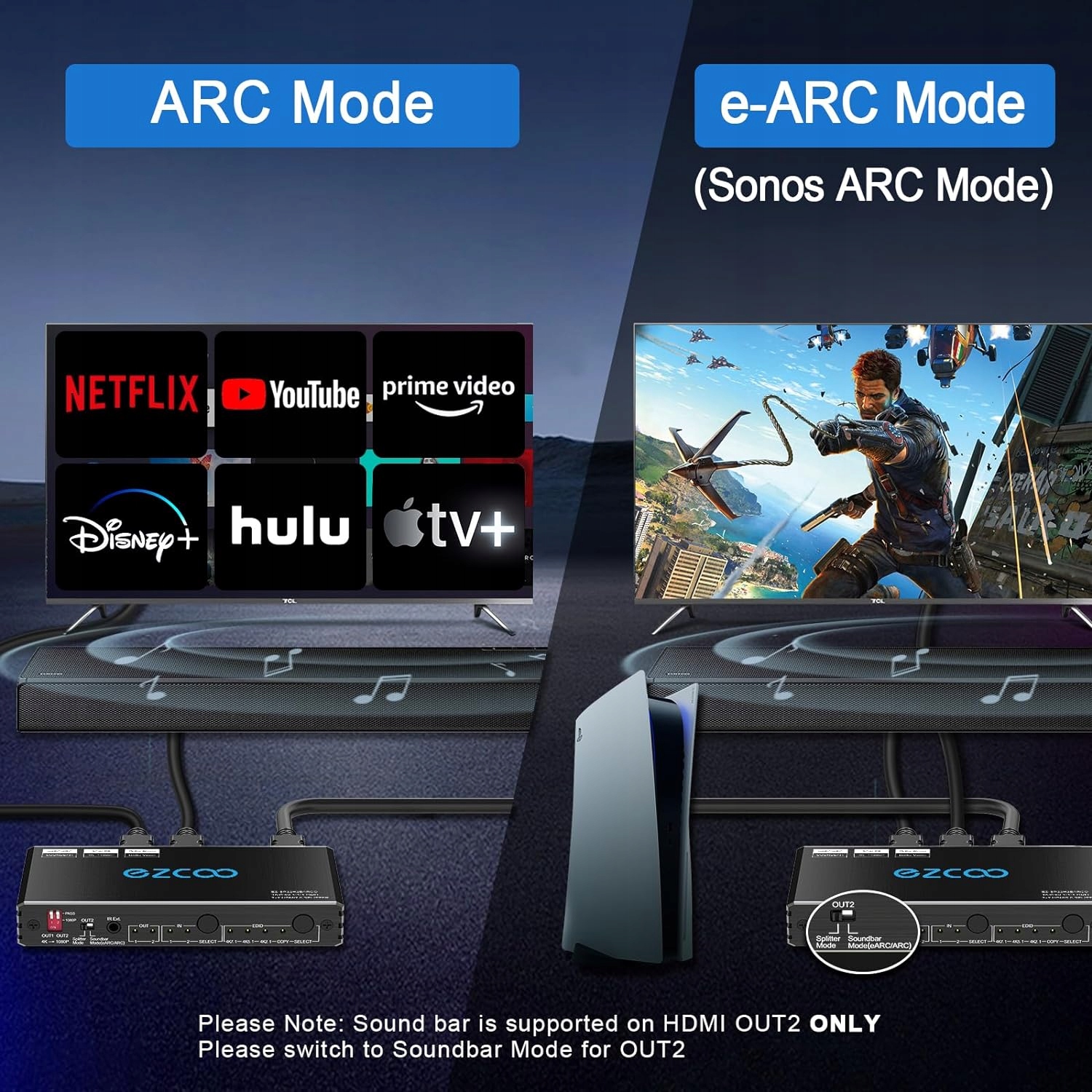 EZCOO Rozdzielacz HDMI 4K 60Hz ARC/eARC OUTLET
