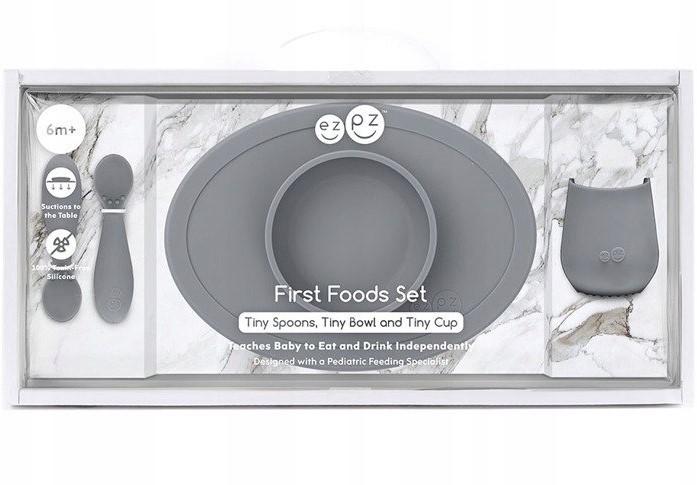 Набор First Foods от американского бренда EZPZ (произносится как izipizi) — идеальный первый набор посуды для вашего ребенка, изготовленный из уникального силикона.
