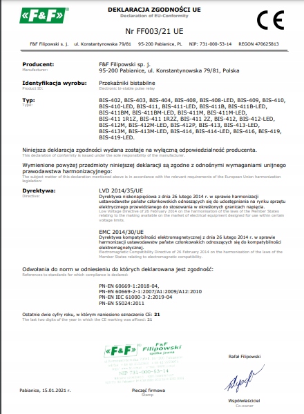 F&F БІСТАБІЛЬНЕ РЕЛЕ БІС-413 230В