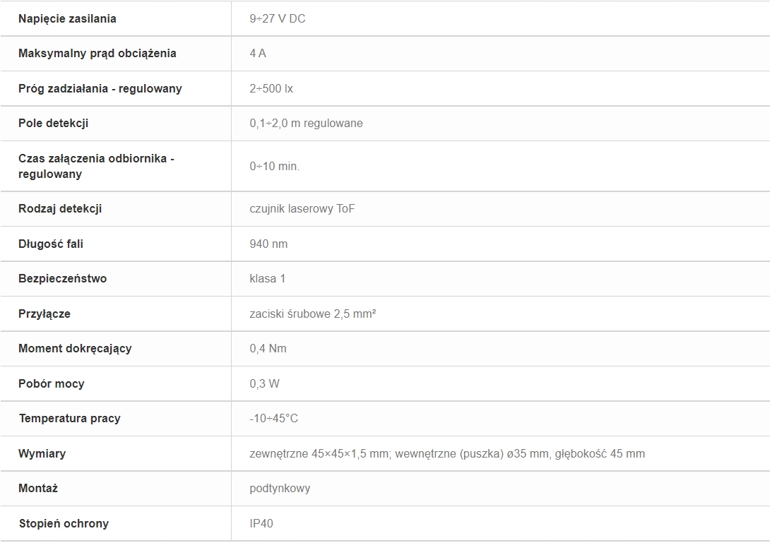 Принцип работы лазерного датчика расстояния Time of Flight заключается в излучении луча света и измерении задержки света, который возвращается в результате отражения от препятствия. Это позволяет точно определить расстояние до объекта. Затем это расстояние сравнивается с установленной дальностью обнаружения. Если что-то появляется на расстоянии меньше указанного значения, свет включается. Это решение идеально подходит для включения цепей освещения, например, на открытых лестницах, где важно, чтобы датчик фиксировал присутствие только на лестнице и игнорировал все, что происходит снаружи.