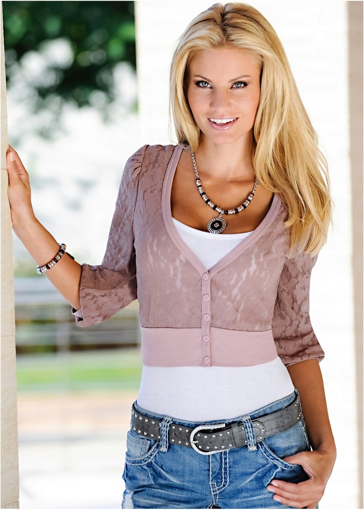Болеро BODYFLIRT из розового дерева (грязно-розовый). Модного дизайна, кружевное болеро с рукавами 3/4, застегивается на пуговицы. Вырез V-образный.Фотографии носят ознакомительный характер, аукцион ведется за цвет на первом фото!!!