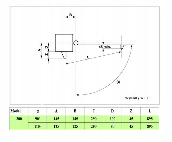 ➜ Чтобы получить раскрытие створки под углом более 90°: A+B ➜ Сохраняйте значение Z, чтобы привод не задел пилястр при закрытии створки