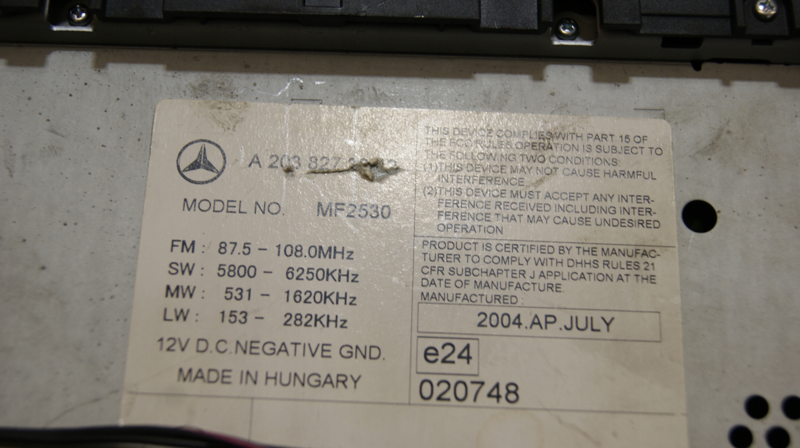 Заводский радио CD Mercedes-Benz C-Klasa W203 сделан в Венгрии A2038273842