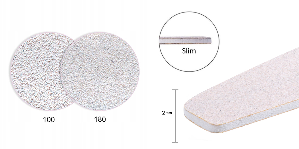 Выпуск 180 - самый популярный выбор среди стилистов. Наиболее универсальная градация будет успешно использована для сокращения ногтей, подавления и развития гибридной массы, а также для выравнивания гелевой массы.