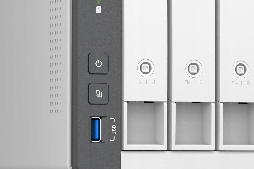 Компактный и стильный TS-433-4G отличается эстетичным и простым дизайном, что делает его идеальным для использования дома или в офисе. В конструкцию также входят жесткие диски, которые можно установить без отвертки.