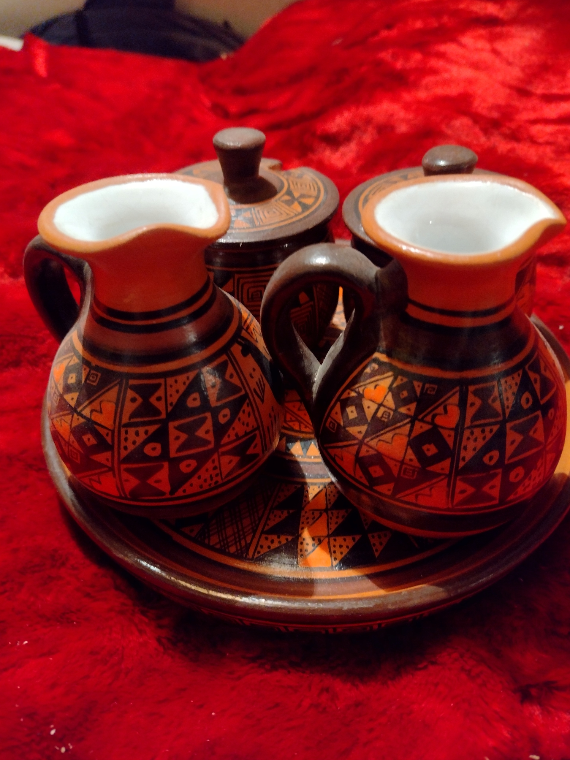 Очень красивый набор для оливкового масла, перца и соли, привезён из Перу