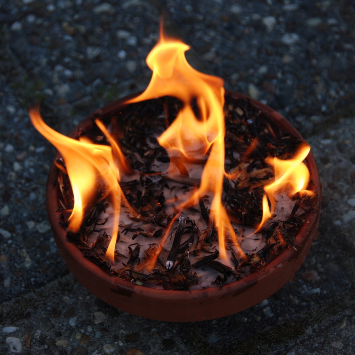 Терракотовый горшок был наполнен смесью сена и свечного воска.