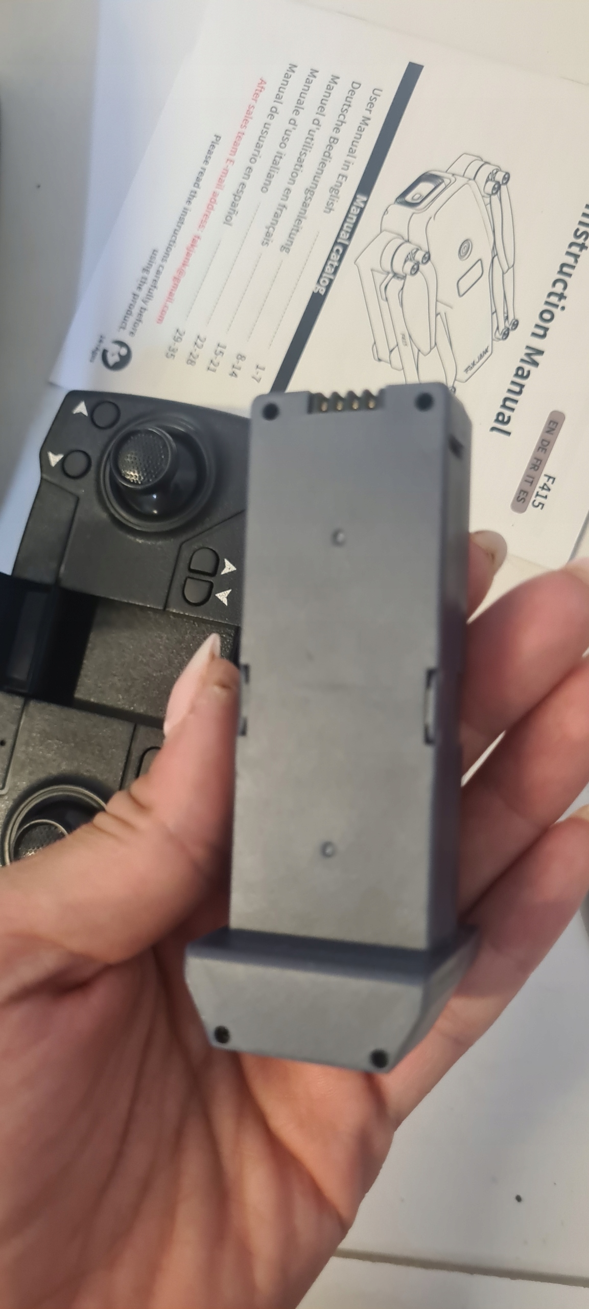 Дрон F415 оснащен двумя батареями, что позволяет увеличить время полета. Одной батареи хватает примерно на 20-25 минут полета.