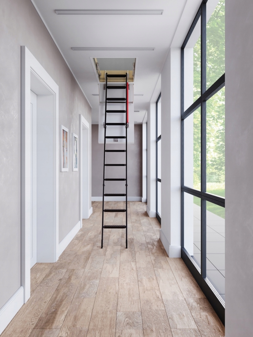 2. Комфорт использования:- клапан, отделенный от лестницы, обеспечивает много места для ноги на каждом шаге. - Последний ранг лестницы высоко минимизирует расстояние до пола на чердаке.