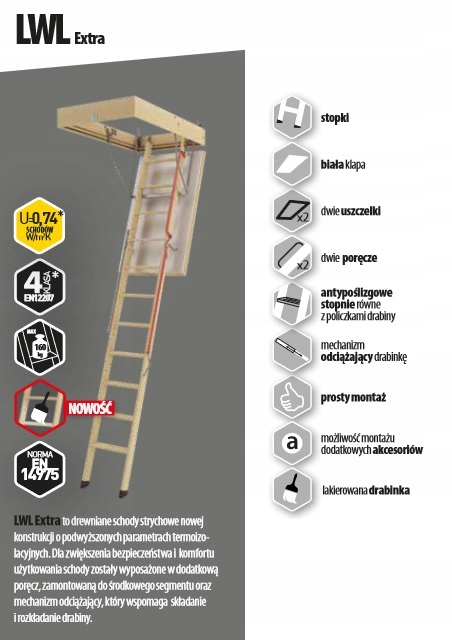 LWL Extra - это деревянная лестница. Поддерживает складывание и развертывание лестницы. Включен