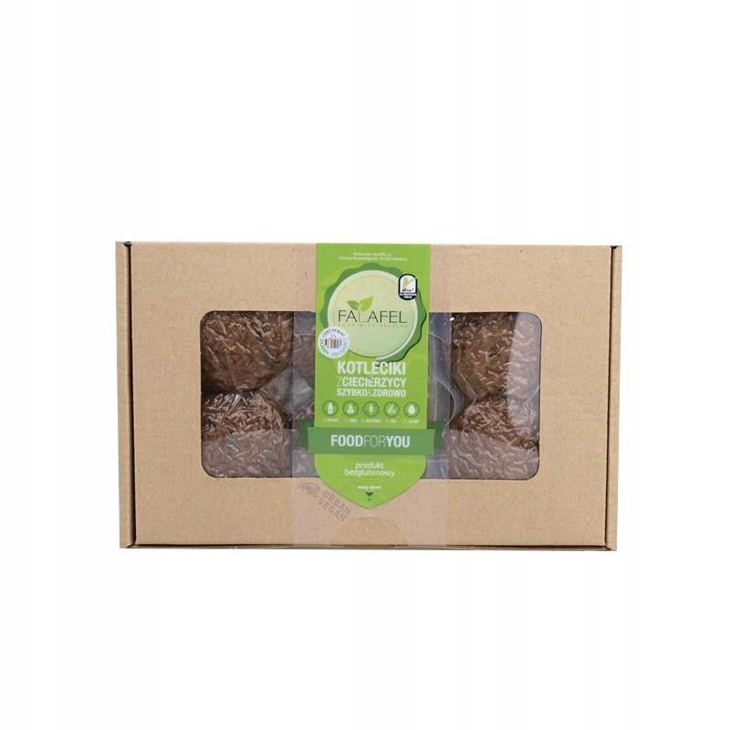 Фалафель - котлеты из нута - без глютена, без сои, без ГМО. Способ приготовления: котлеты разогрейте в духовке, на гриле или на сковороде без жира. Изготовлено на рафинированном рапсовом масле. Хранить при температуре от 0 до 6 градусов С. Продукт упакован под вакуумом. После распаковки употребить в течение 48 часов.