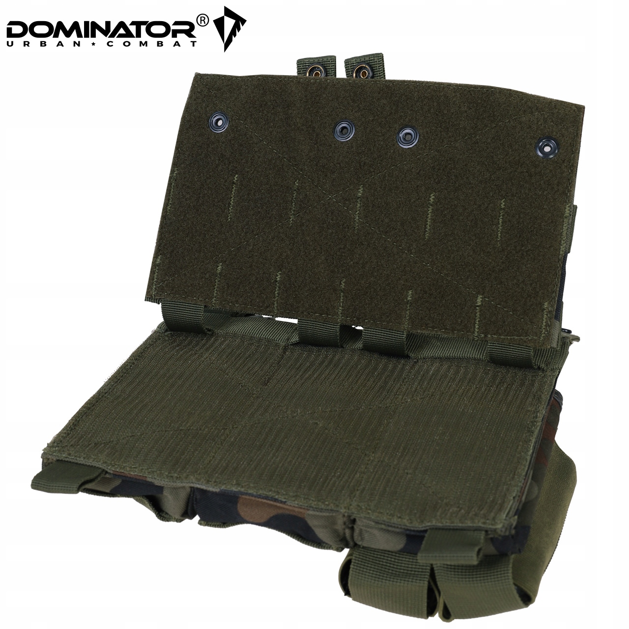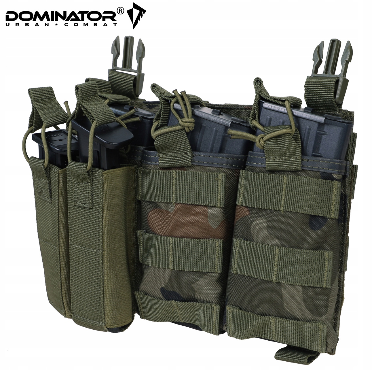 Вам не придется выбирать между емкостью и совместимостью! Подсумок польского бренда DOMINATOR вмещает до 5 магазинов, оставаясь при этом совместимым со многими типами тактических жилетов.