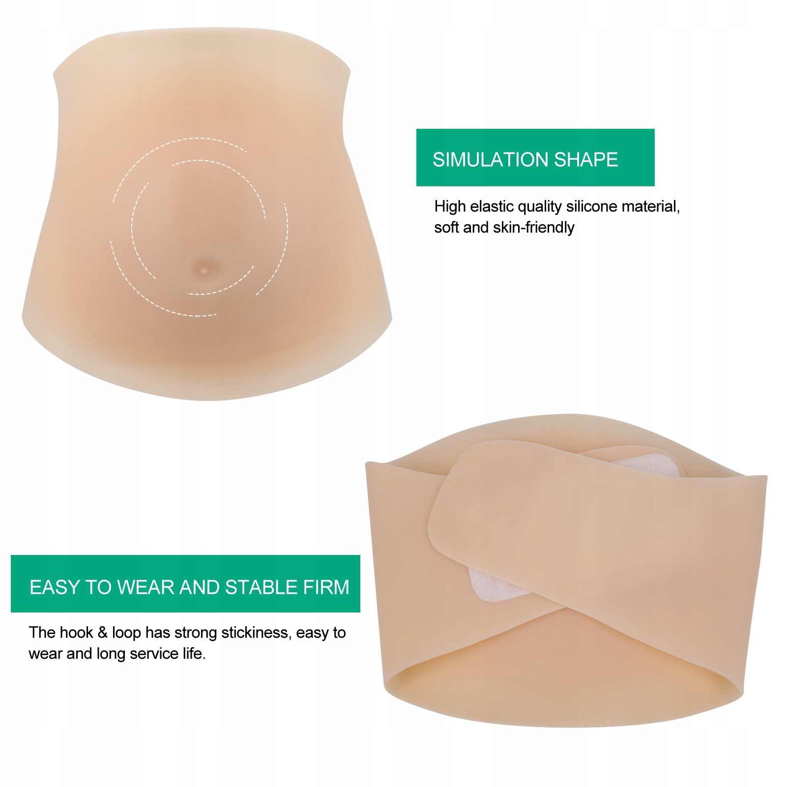 1. Силиконовая беременность выглядит и кажется потрясающим, реалистичным и легким. Доступны два стиля, 2-3 месяца, 4-5 месяцев, вы можете выбрать свои потребности. Силиконовый живот Faszywy во время беременности находится на подшипнике, а крючок и петля держат талию на месте. Несоответствие, безвкусно и растягивается, отлично и удобно носить. Мягкий, высокомуживающий и удобный, изготовленный из высококачественного силиконового материала