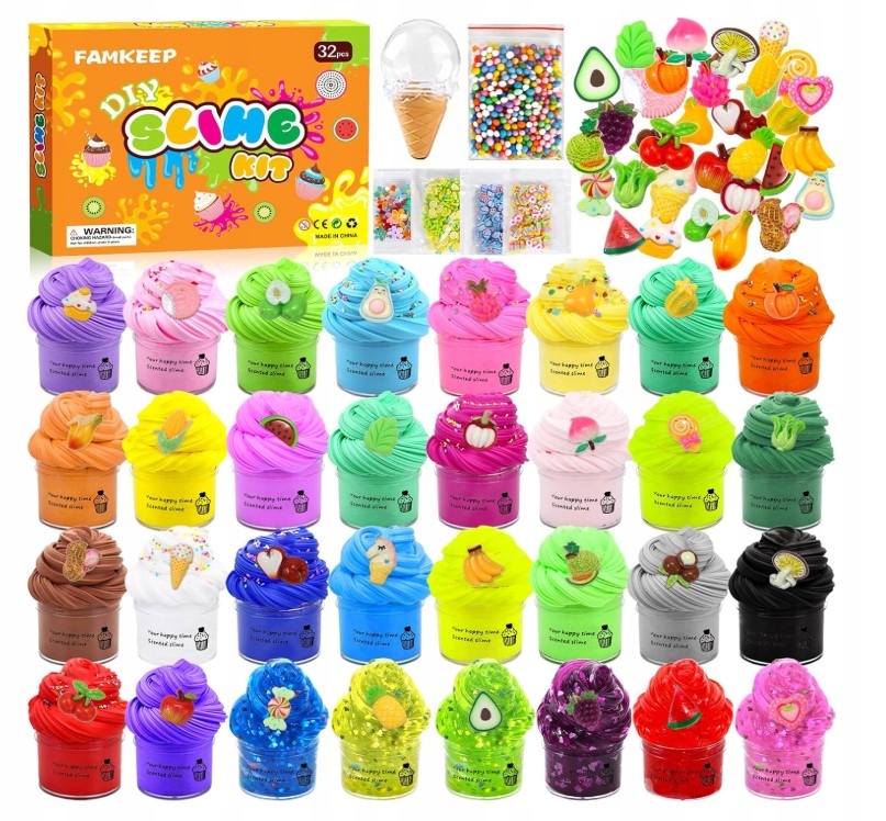 FAMKEEP НАБІР FLUFFY SLIME 32 ЕЛЕМЕНТИ МІНІ КОЛЬОРОВІ ГЛЮТИ DIY