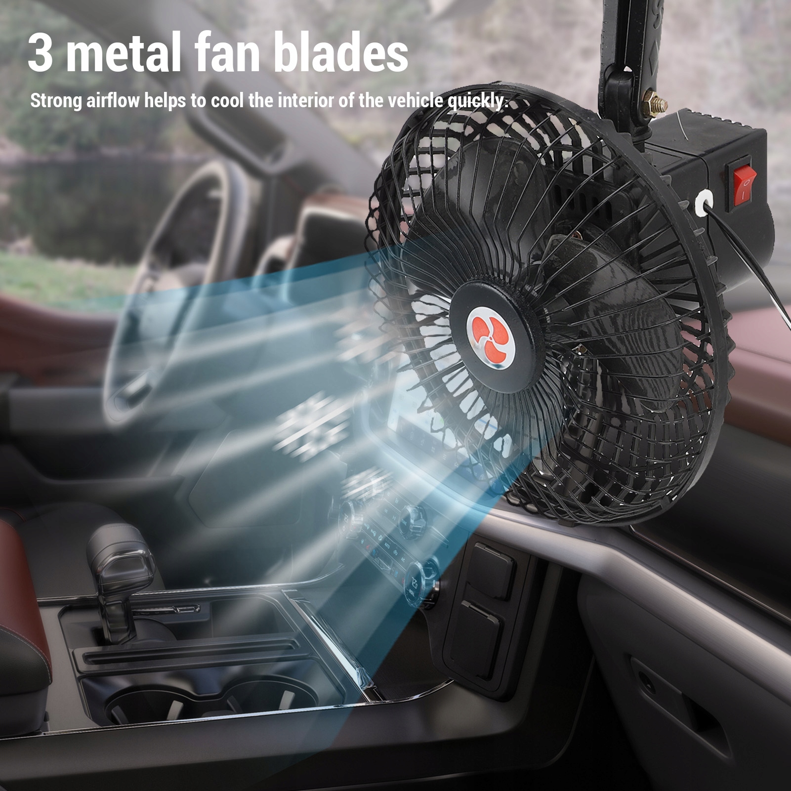 5. Простая установка: компактный и прочный вентилятор легко закрепить в автомобиле. После затяжки всех гаек зажим становится достаточно устойчивым, что позволяет вентилятору оставаться на месте даже на ухабистых дорогах.
