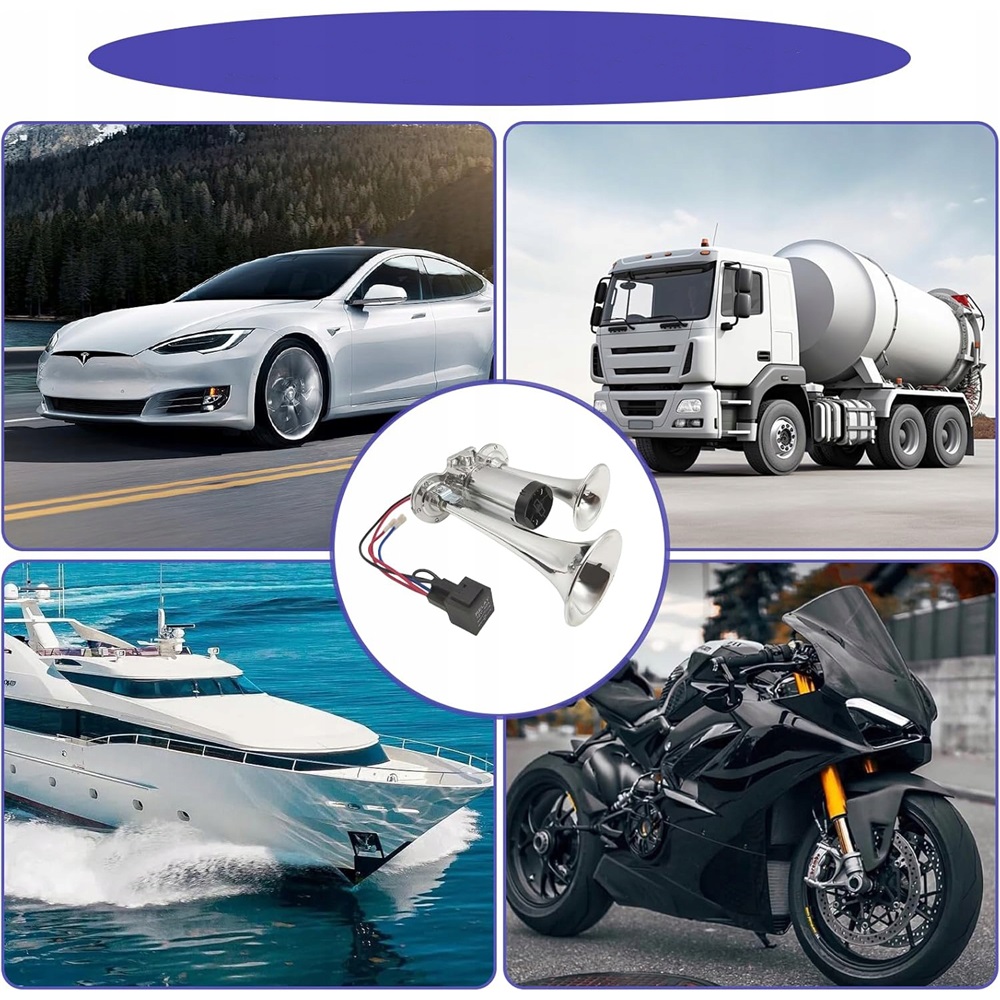 Воздушный рог подходит для всех автомобилей с 12 В с источниками воздуха и может использоваться в внедорожниках, мотоциклах, яхтах, лодках, внедорожниках, автобусах и поездах и т. Д. p>