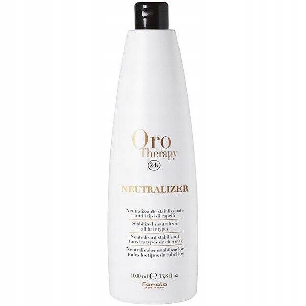 fanola oro Naturalizer 1000 мл Фанола Орорапия Терапия. Продукт фиксирует сгибание волос и прерывает влияние жидкости до долговечного. Нейтрализатор Фанола содержит 24-каратное золото, кератин и аргановое масло. Эластичность
