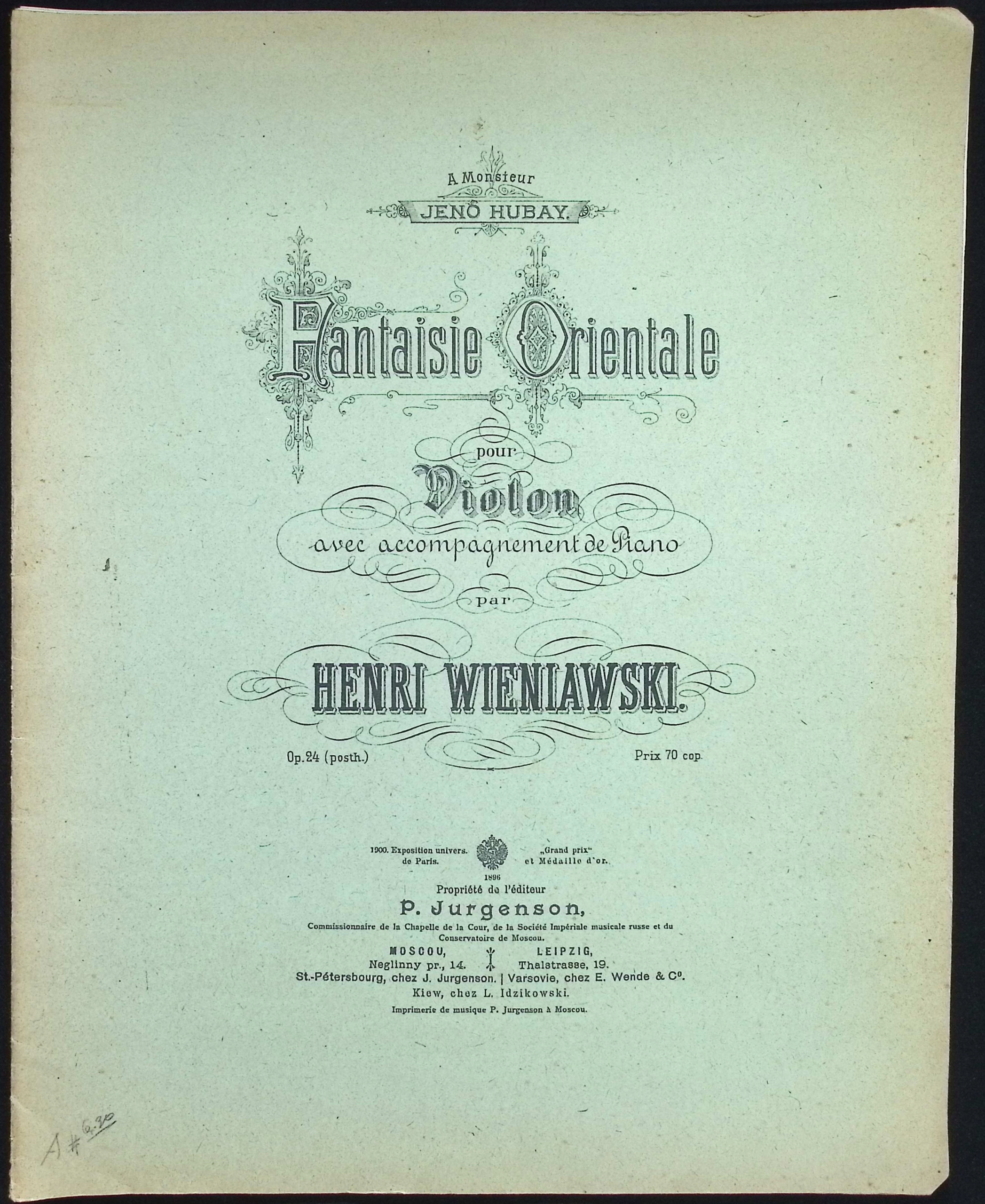 Просматривая «Fantaisie Orientale pour Violin - Wieniawski» данное изделие из «Музыка» вы можете быть уверены, что после оформления заказа, доставки в Украину, вы получите именно то, что заказывали, в оговоренные сроки и европейского качества.
