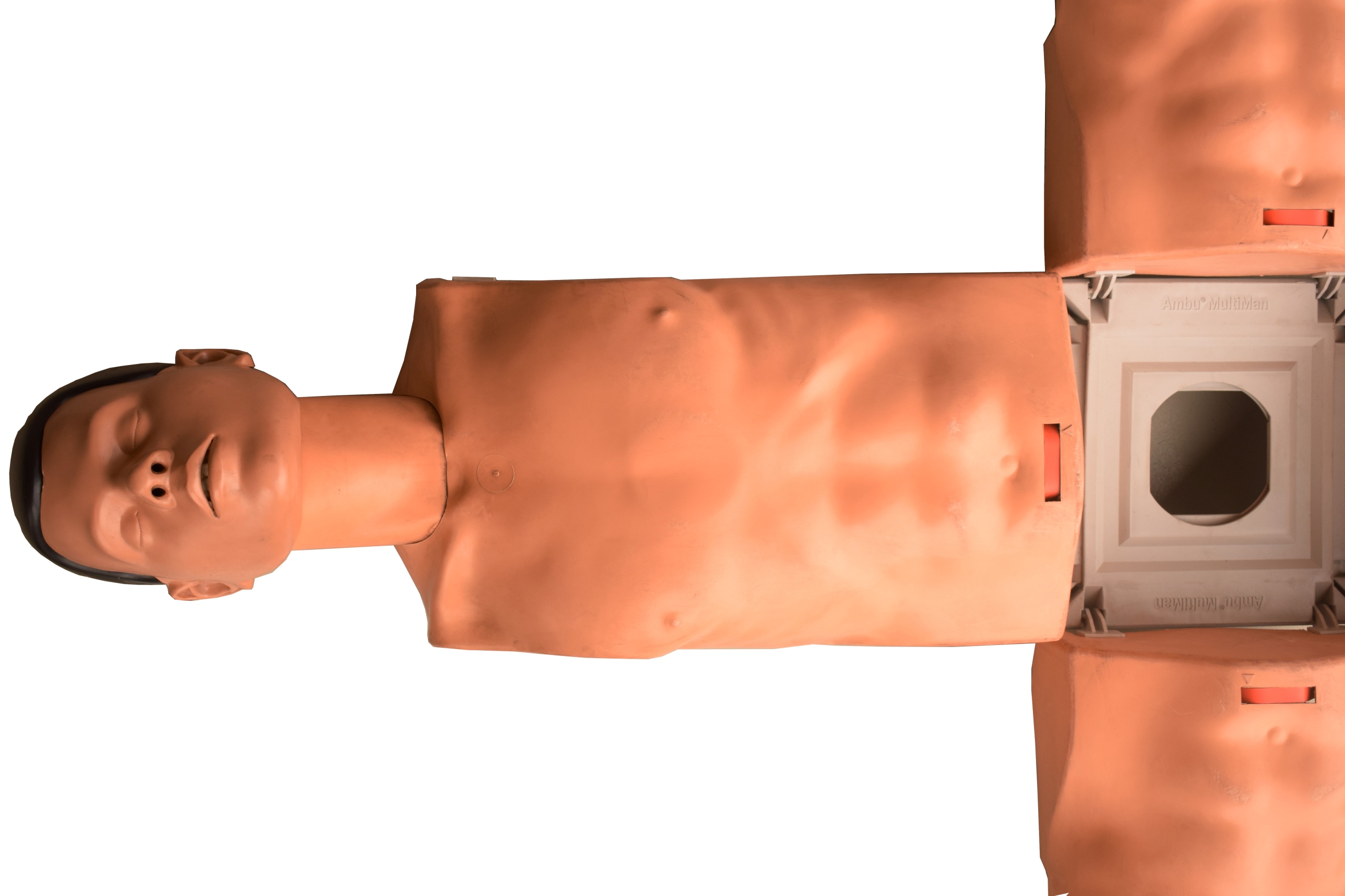 Ambu MultiMan предлагает реализм, комфорт и возможность обмена опытом между практикующими. Движение грудной клетки при вдохе воздуха, а также слышимый и пальпируемый выдох облегчают освоение техники искусственного дыхания. Показатель глубины прогиба грудной клетки подтверждает правильность массажа сердца.
