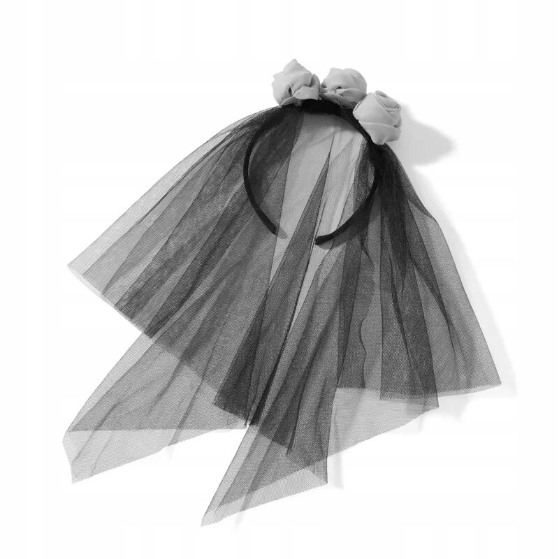 ⭐ Повязка на голову с вуалью, украшенная тремя розами обогащает образ умершей невесты, хорошо сочетается со многими костюмами на Хеллоуин.