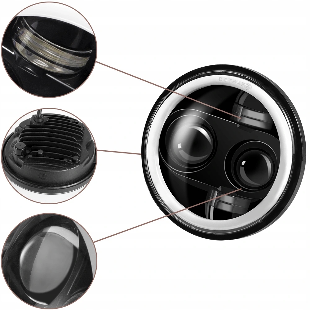 Фара мотоцикла имеет 4 различных режима освещения: дальний свет 6500 лм и ближний свет 4300 лм, янтарно-белое гало-кольцо ДХО может удовлетворить ваши потребности в безопасном вождении и ярких дорогах в любых условиях. ситуация.